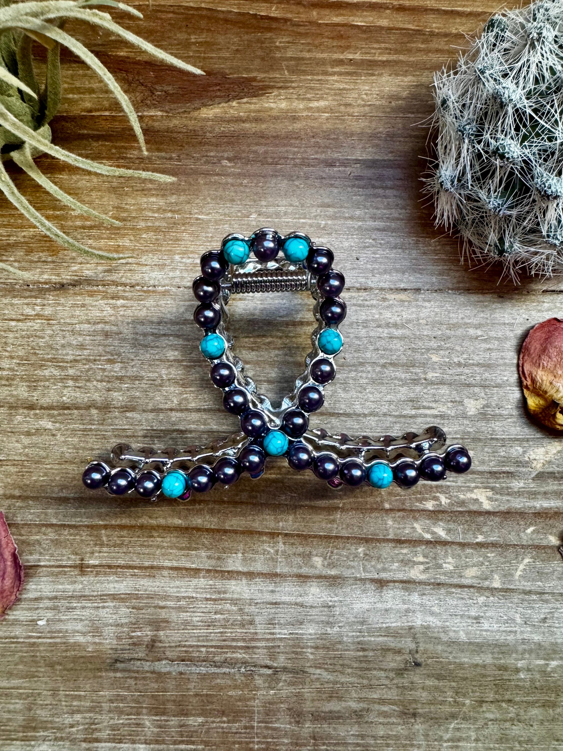 Smaller Pearls hair clips - turquoise and faux pearls